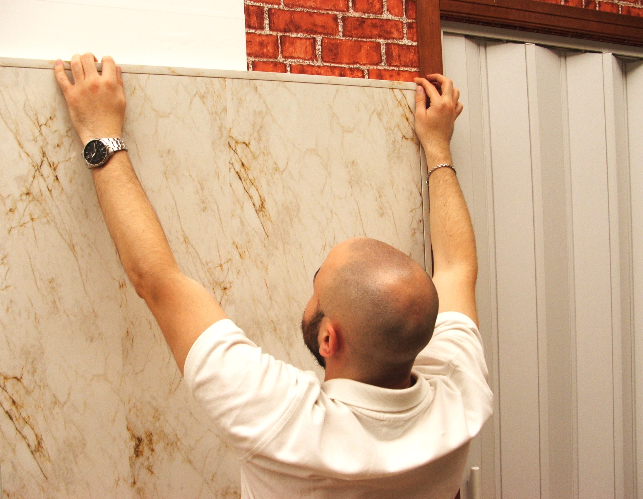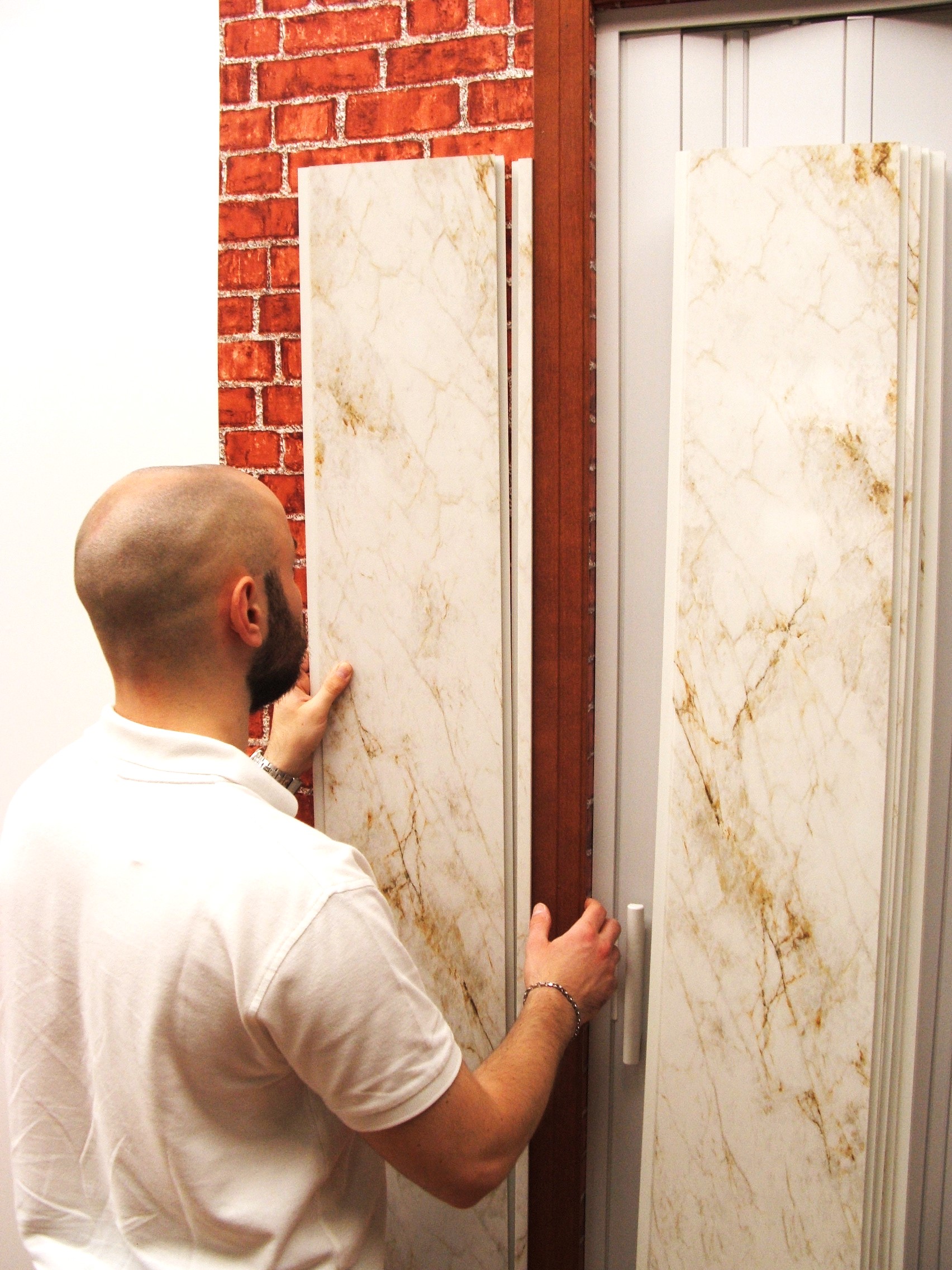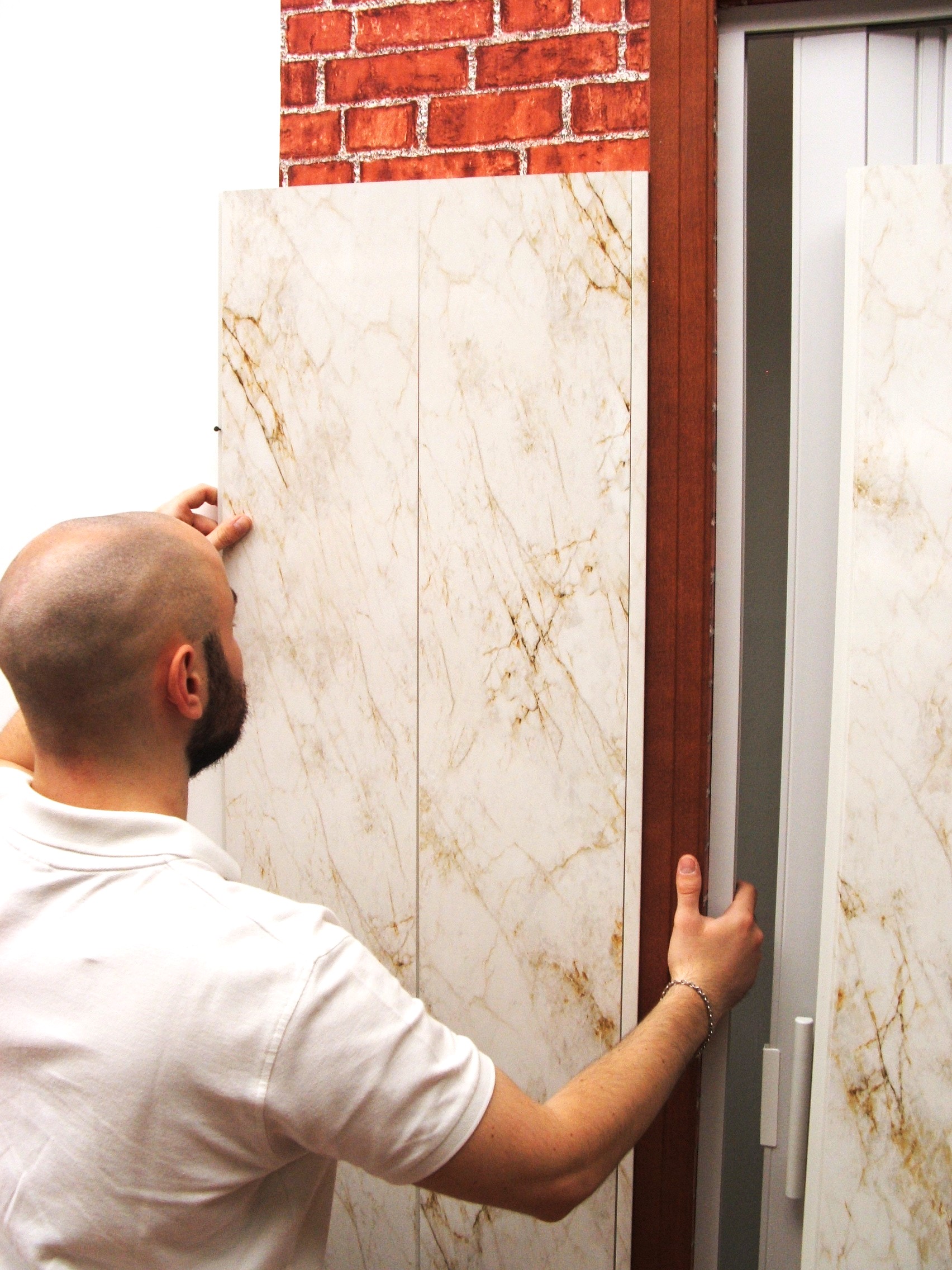 Pannelli da parete in pvc per rivestimento murale – materiale ignifugo classe 1 Colore Bianco. Larghezza pannello cm 20x cm1 di spessore. Facile da installare.