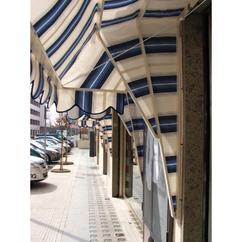Tenda a cappottina che si adatta particolarmente a prospetti bassi, permettendo di ottenere una sporgenza maggiore rispetto all’ingombro disponibile.